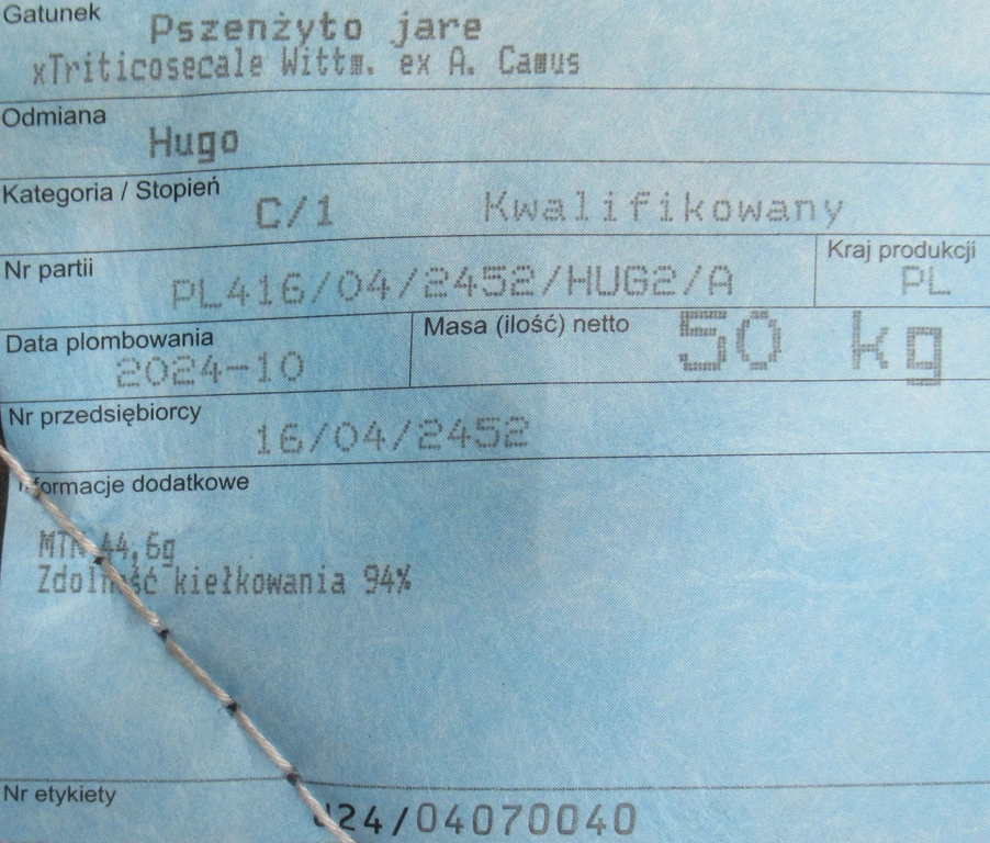 Pszenżyto jare Hugo nasiona kwalifikat C1