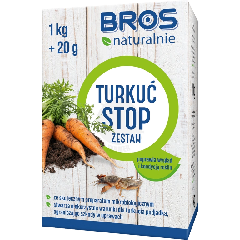 - Turkuć STOP Zestaw to naturalne rozwiązanie do walki z turkuciem podjadkiem. Zawiera mikrobiologiczny preparat, który odstrasza szkodnika, oraz nawóz organiczny poprawiający zdrowie roślin. Bezpieczny dla środowiska, idealny do upraw ekologicznych.