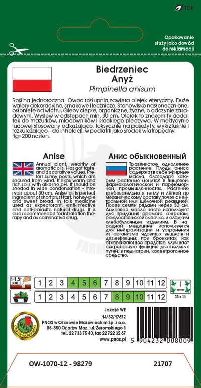 - Jednoroczna roślina o dekoracyjnych kwiatach i aromatycznych nasionach. Doskonały do wypieków, likierów i herbat. Wykazuje właściwości wykrztuśne i wspomaga trawienie. Wymaga słonecznego, osłoniętego stanowiska i żyznej, zasadowej gleby.