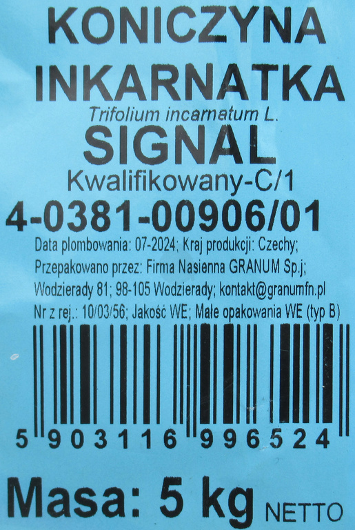 Koniczyna inkarnatka Signal kwalifikat C1 nasiona