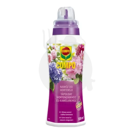 - Płynny nawóz Compo do hortensji i roślin kwasolubnych. Zapewnia zdrowy wzrost, intensywne kolory kwiatów i liści oraz działa natychmiast. Z mikroelementami i żelazem. Do ogrodu, domu i na balkon. Łatwe dozowanie nakrętką.