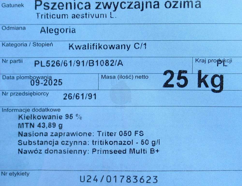 Pszenica ozima Alegoria nasiona kwalifikat C1