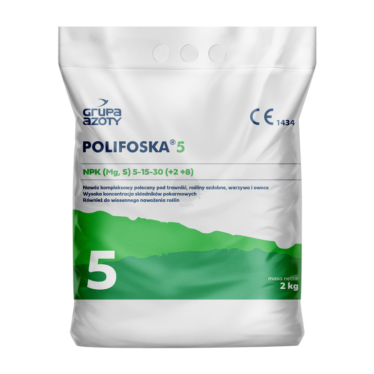 Polifoska 5 to granulowany nawóz mineralny przeznaczony do nawożenia szerokiego zakresu roślin – zarówno ozdobnych, jak i użytkowych. Produkt doskonale sprawdza się pod wszystkie rośliny uprawne niewrażliwe na chlor. Może być stosowany przed siewem lub sadzeniem, a także pod rośliny już rosnące. Dzięki odpowiednio dobranym proporcjom składników pokarmowych korzystnie wpływa na rozwój systemu korzeniowego, wzmacnia odporność roślin na niskie temperatury i podnosi jakość oraz wielkość plonów.