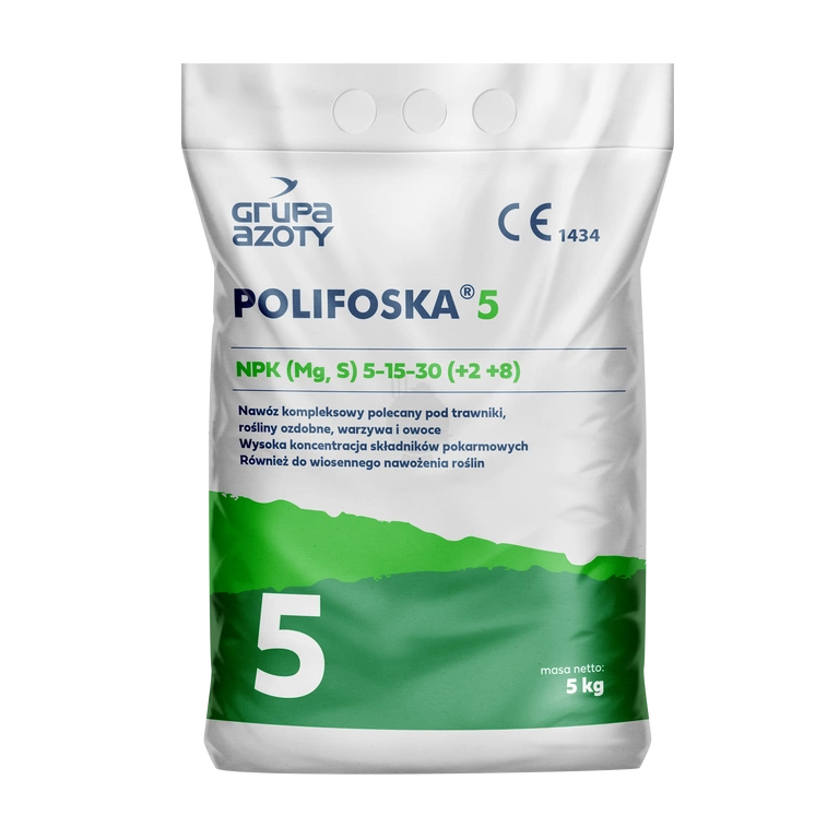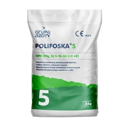 Polifoska 5 to granulowany nawóz mineralny przeznaczony do nawożenia szerokiego zakresu roślin – zarówno ozdobnych, jak i użytkowych. Produkt doskonale sprawdza się pod wszystkie rośliny uprawne niewrażliwe na chlor. Może być stosowany przed siewem lub sadzeniem, a także pod rośliny już rosnące. Dzięki odpowiednio dobranym proporcjom składników pokarmowych korzystnie wpływa na rozwój systemu korzeniowego, wzmacnia odporność roślin na niskie temperatury i podnosi jakość oraz wielkość plonów.
