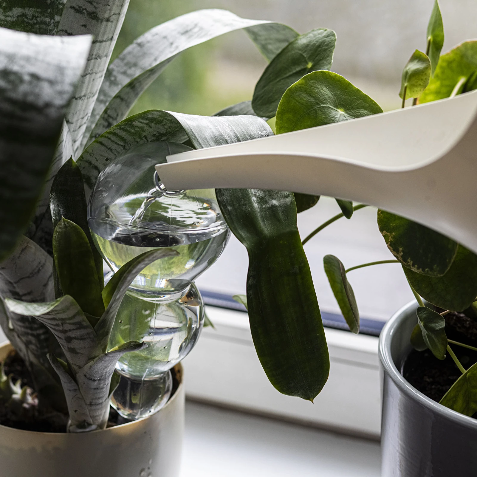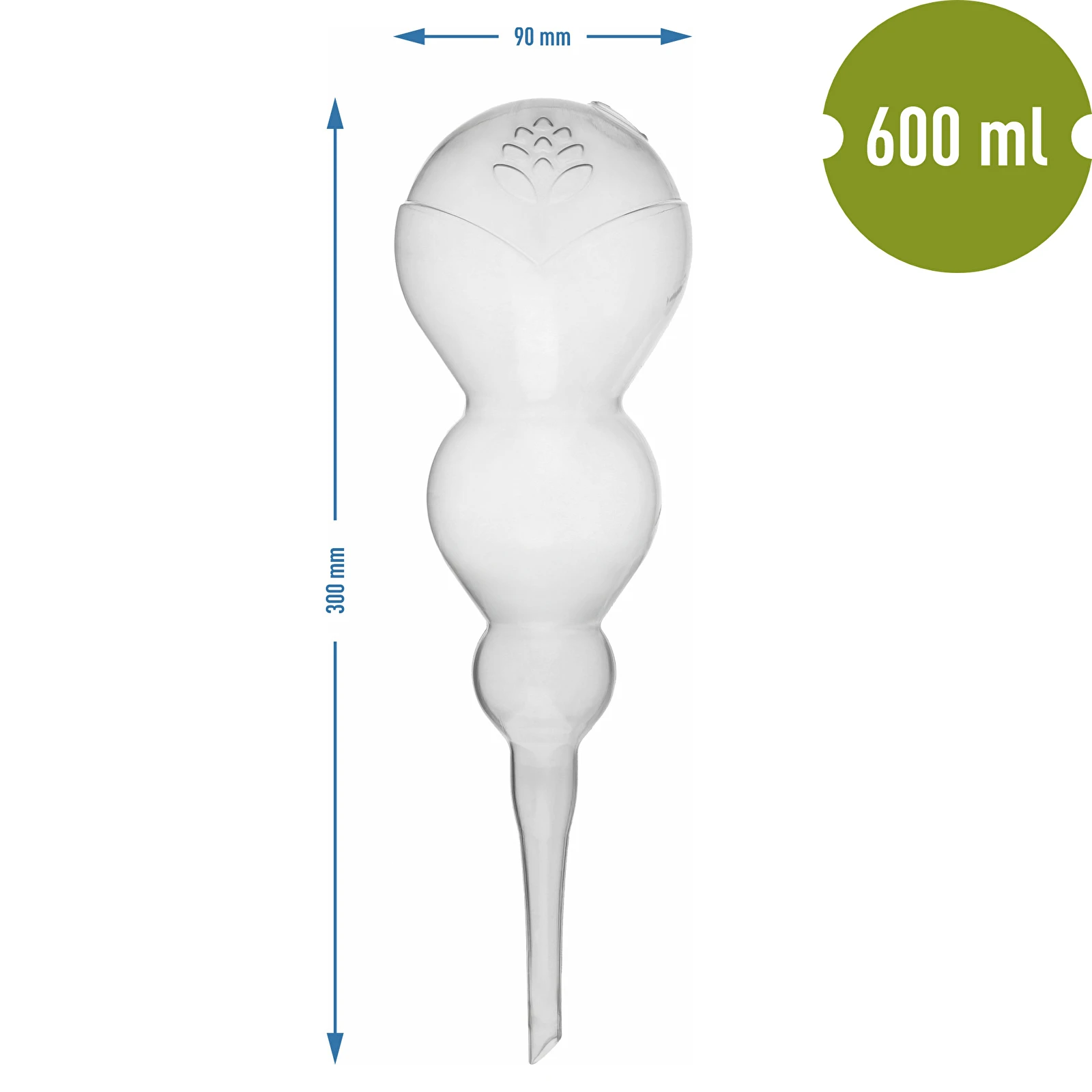Praktyczna kula nawadniająca z trzema połączonymi zbiorniczkami to rozwiązanie stworzone z myślą o większych doniczkach i roślinach balkonowych. Jej smukła konstrukcja mieści aż 600 ml wody, która stopniowo uwalniana jest bezpośrednio do strefy korzeniowej, zapewniając skuteczne i równomierne nawodnienie przez dłuższy czas.