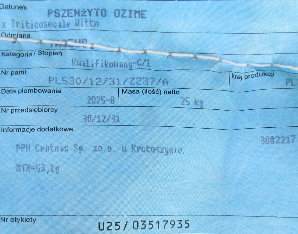 Pszenżyto ozime Tadeus nasiona kwalifikat C1