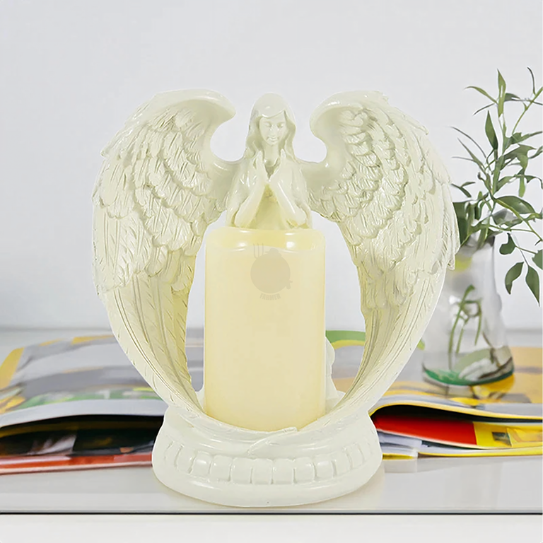 - Figurka aniołka LED ze świeczką to elegancki świecznik z gipsu, który tworzy efekt migoczącego płomienia bez ryzyka otwartego ognia. Symboliczna i nastrojowa dekoracja do domu, na uroczystości czy miejsce pamięci.