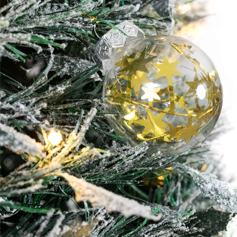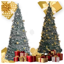 - Udekorowana składana choinka 150 cm z lampkami LED i bombkami to gotowa świąteczna dekoracja, którą wystarczy rozłożyć. Stabilna, trwała i wielokrotnego użytku – idealna do domu i biura.
