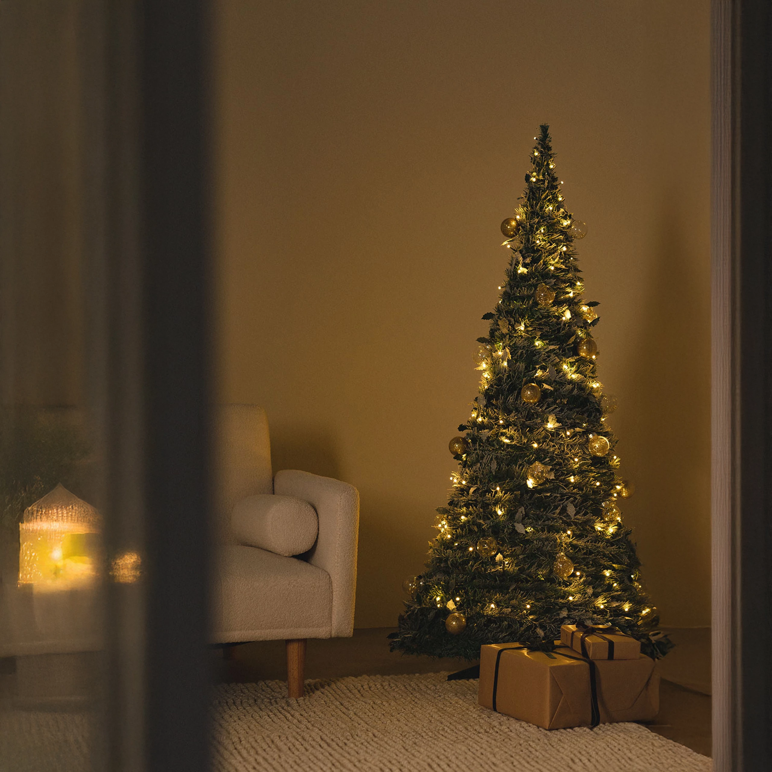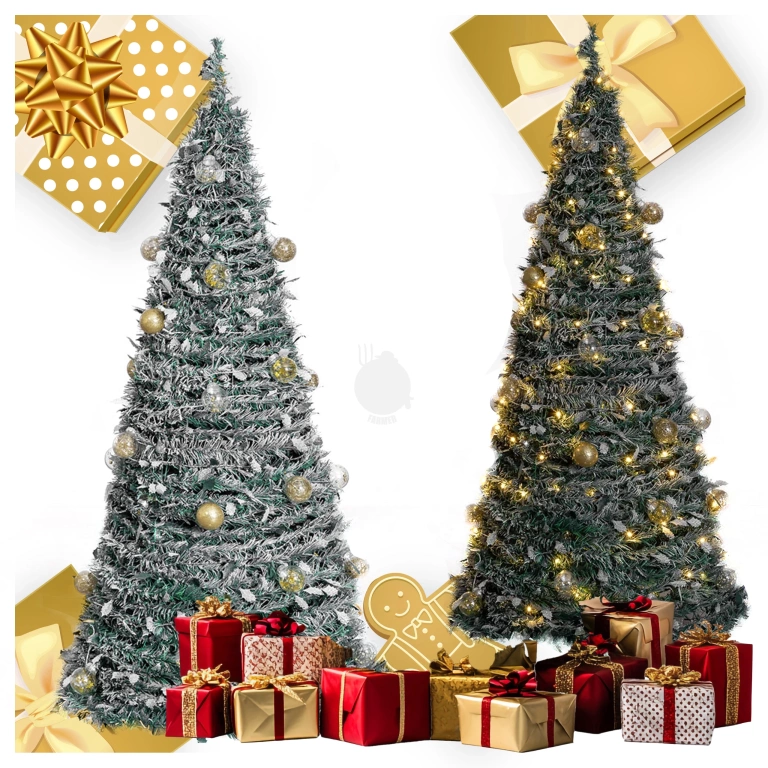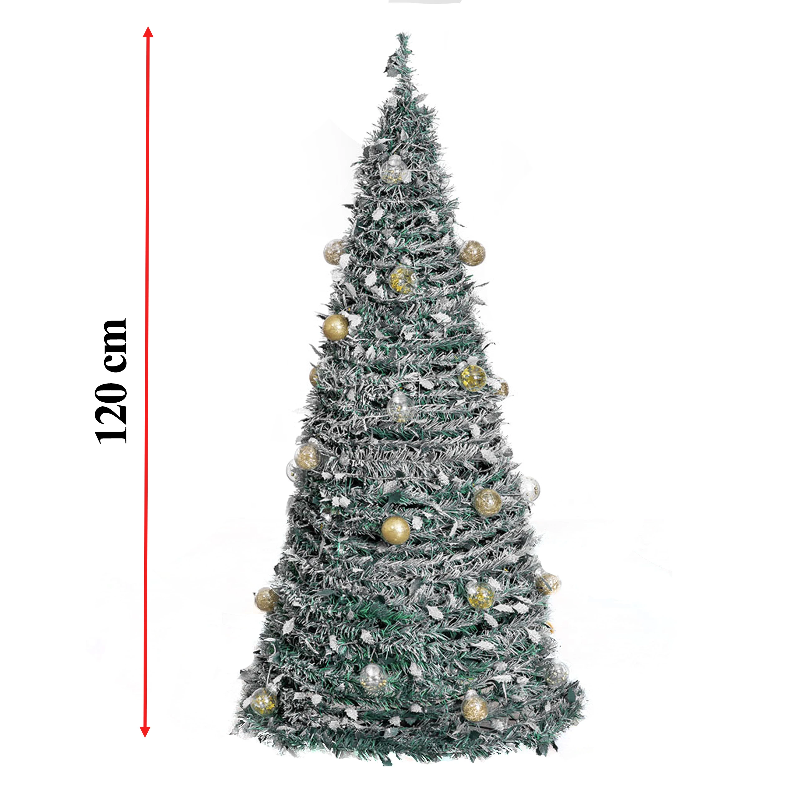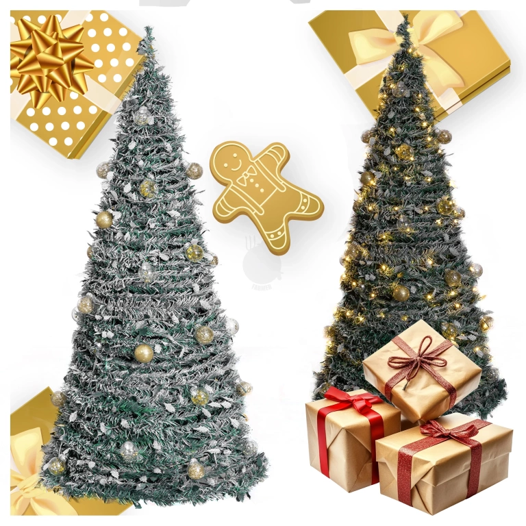 • Udekorowana składana choinka 120 cm z lampkami LED i bombkami to gotowa świąteczna dekoracja, którą wystarczy rozłożyć. Stabilna, trwała i wielokrotnego użytku – idealna do domu i biura.