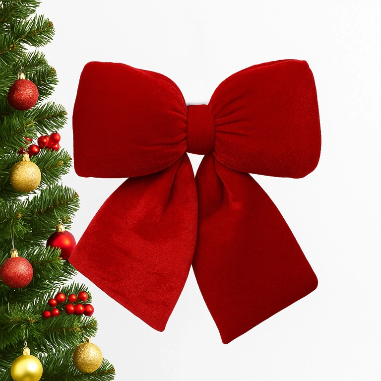 Zawieszka kokarda welurowa w kolorze czerwonym to elegancka ozdoba świąteczna, która nadaje wnętrzom ciepły, klasyczny charakter Bożego Narodzenia. Wykonana z miękkiego, aksamitnego weluru, zachwyca głębią koloru i subtelnym połyskiem, który pięknie odbija światło lampek choinkowych. Sztywny materiał sprawia, że kokarda zachowuje swój kształt i przez długi czas wygląda nienagannie. To dekoracja, która sprawdzi się w każdym domu – od tradycyjnych wnętrz po nowoczesne aranżacje świąteczne.