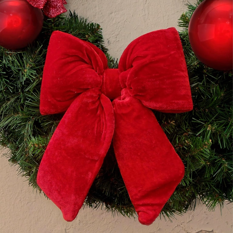 • Czerwona kokarda welurowa to elegancka i trwała dekoracja świąteczna. Miękka, sztywna i efektowna, doskonale sprawdzi się na choince, drzwiach, prezentach i stroikach.