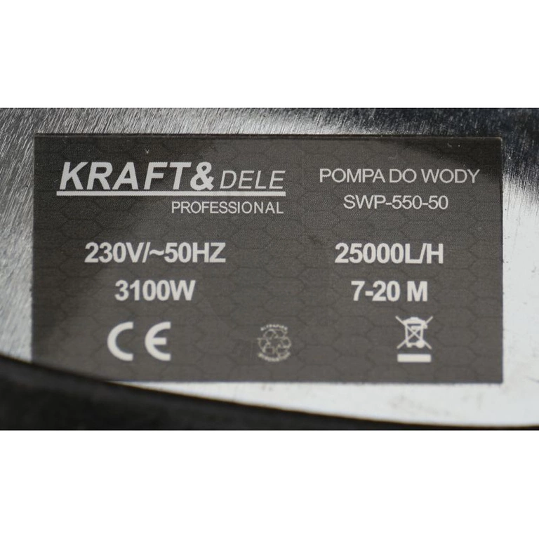- Pompa zatapialna KD763 KRAFT&DELE o mocy 3100 W i wydajności 25 000 l/h. Wyposażona w rozdrabniacz i pływak, idealna do wody brudnej, ścieków i szamba. Trwała, szczelna i odporna na korozję, z szybkozłączką w zestawie.