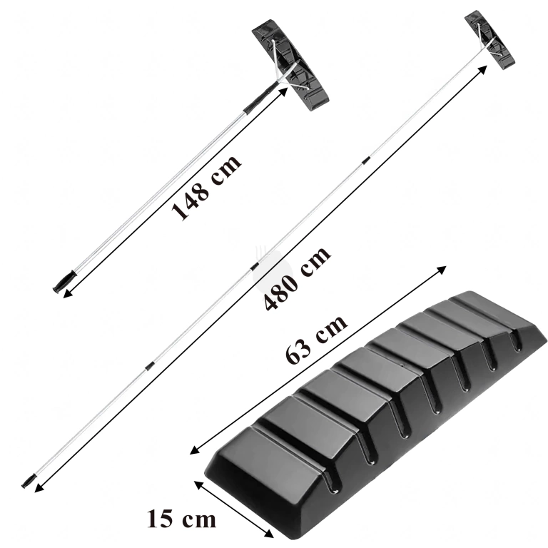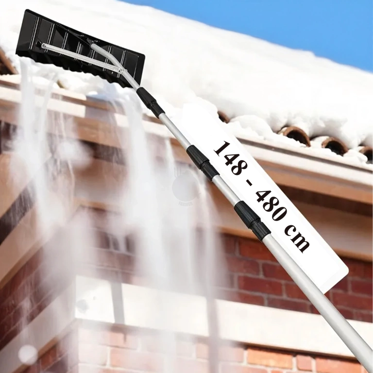 - Teleskopowy zgarniacz śniegu 148–480 cm do dachów, pojazdów i paneli PV. Lekki, aluminiowy, z elastyczną łyżką 63 cm i antypoślizgowym uchwytem. Stabilny, składany i wygodny w użyciu, umożliwia odśnieżanie bez drabiny.