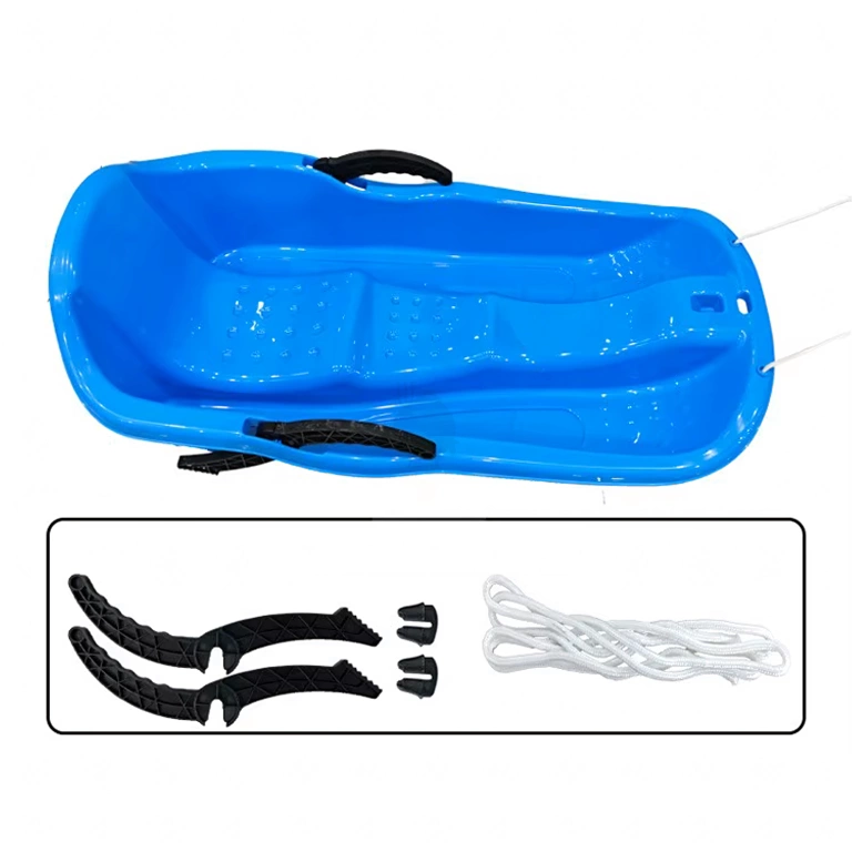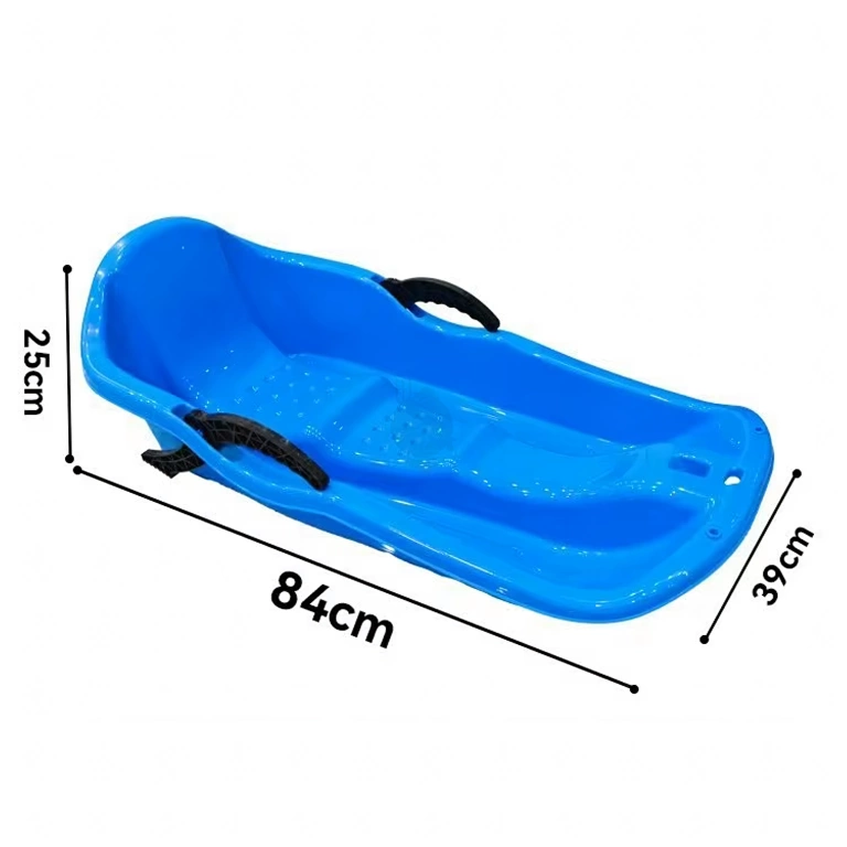 - Lekkie niebieskie sanki plastikowe dla dzieci z hamulcami i antypoślizgowym siedziskiem. Wytrzymałe na mróz, stabilne, z długą linką do ciągnięcia. Idealne do zimowych zjazdów i spacerów.