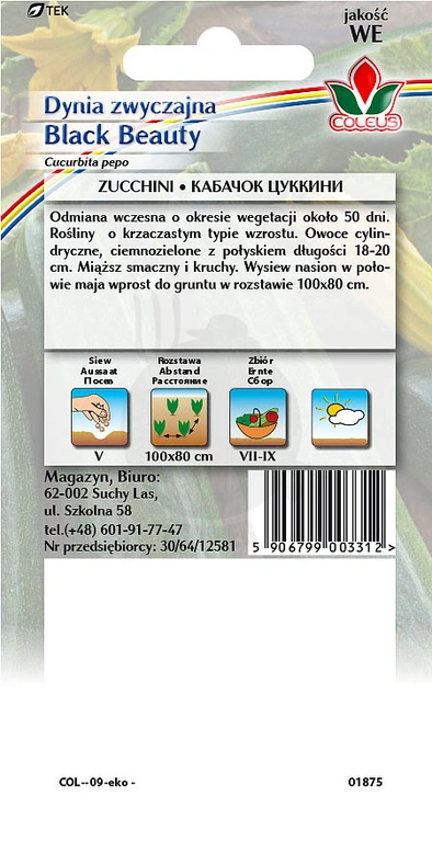 Dynia zwyczajna cukinia Black Beauty 2 g nasiona Coleus