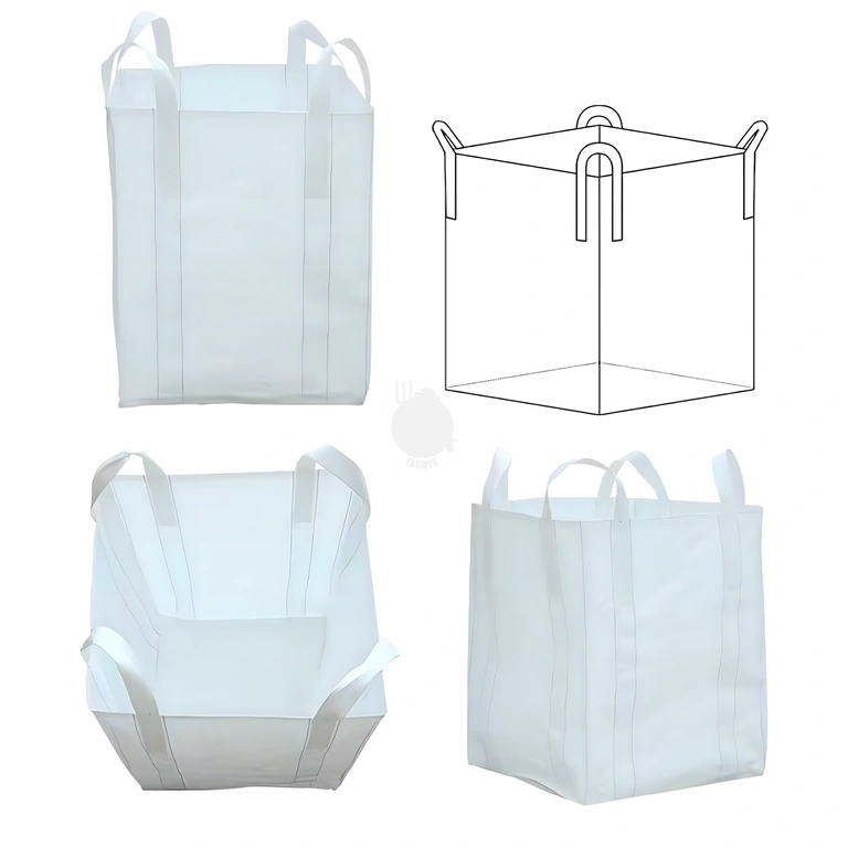 - Worek Big Bag kontenerowy 90 × 90 × 120 cm o udźwigu 1000 kg. Wykonany z mocnego polipropylenu 145 g/m², z czterema uchwytami Cross Corner. Otwarta góra i płaskie dno ułatwiają napełnianie oraz transport materiałów sypkich i odpadów.