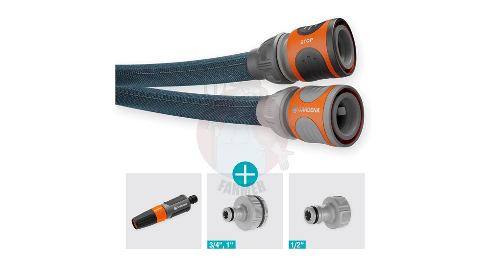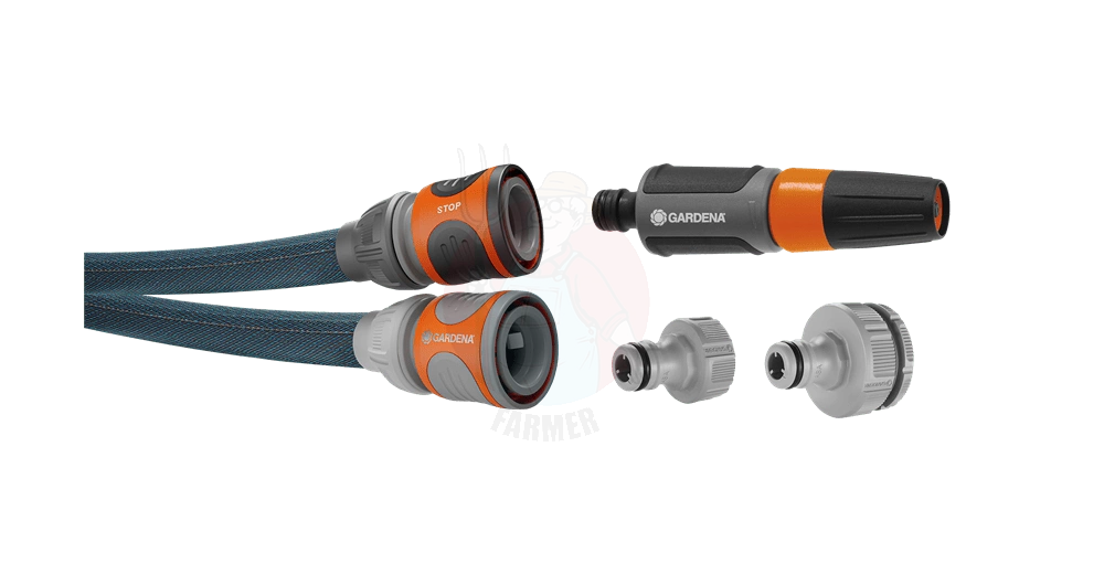 - Zestaw z elementami Original GARDENA System, dyszą zraszającą i przyłączami kranowymi 18225/18220