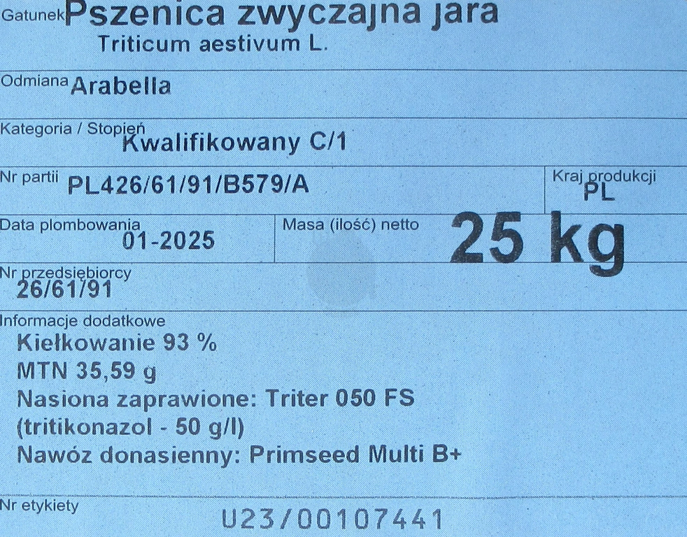 - Zalecana norma wysiewu, przy optymalnym terminie siewu, to 400-450 kiełkujących nasion na 1m2, tj. 180-200 kg/ha.