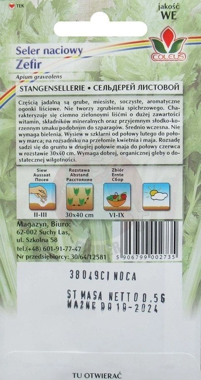 - Częścią jadalną są grube, mięsiste, soczyste, aromatyczne ogonki liściowe. Odmiana Zefir charakteryzuje się ciemno zielonymi liśćmi o dużej zawartości witamin, składników mineralnych oraz przyjemnym słodko-korzennym smakiem podobnym do szparagów.