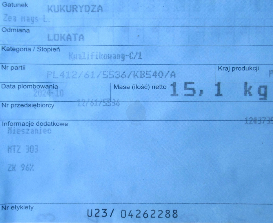- Uprawa na ziarno w 1 i 2 rejonie uprawy kukurydzy