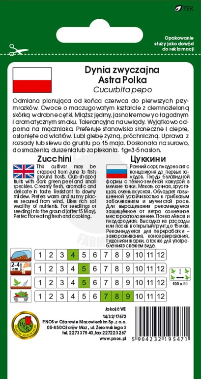 Dynia zwyczajna cukinia Astra Polka 3 g PNOS