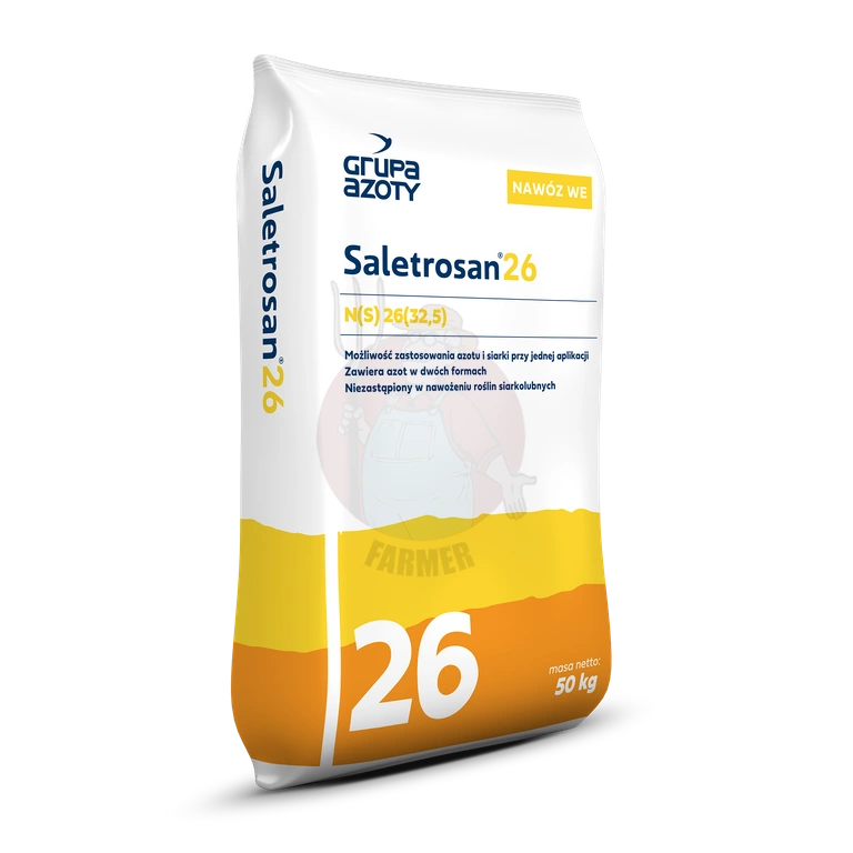 Najważniejszą zaletą tego nawozu jest możliwość zastosowania wiosną azotu i siarki. Azot w formie amonowej nie ulega wymywaniu z gleby, jest wolno pobierany przez rośliny, wpływa na dobre ukorzenienie roślin, wspomaga pobieranie fosforu i ogranicza nadmierne pobieranie potasu. Zawartość szybko działającej, saletrzanej formy azotu przyspiesza wegetację roślin krótko po zastosowaniu nawozu, czyli wiosną przyspiesza regenerację roślin po zimowym osłabieniu. Duża zawartość siarki siarczanowej, doskonale rozpuszczalnej w wodzie, uodparnia rośliny i zabezpiecza je w siarkę już od początku wiosennej wegetacji. Pamiętajmy, że największe niedobory siarki w glebie występują zawsze wczesną wiosną, po zimowym wymyciu z gleby. Stosowanie Saletrosanu® 26 makro powoduje dobre ukorzenienie roślin, zwiększa dynamikę ich wzrostu już we wczesnych fazach rozwojowych oraz poprawia ich odporność, decyduje więc o wzroście plonu i poprawie jego jakości.