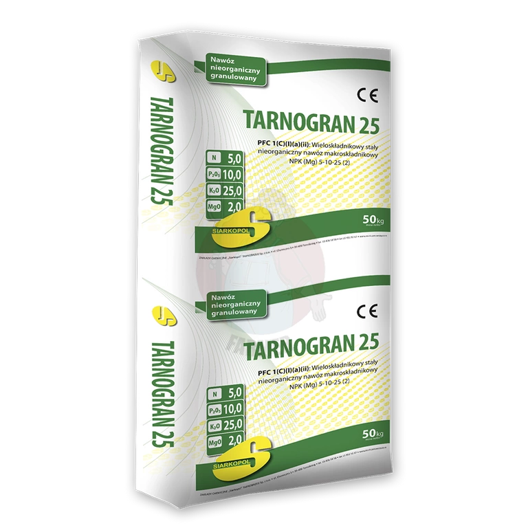 Tarnogran 25 jest uniwersalnym granulowanym wieloskładnikowym nawozem nieorganicznym, przeznaczonym do nawożenia: buraków, kukurydzy, rzepaku, zbóż, ziemniaków, użytków zielonych oraz wszystkich innych roślin o wysokim zapotrzebowaniu względem potasu. Zawiera składniki pokarmowe w formach łatwo przyswajalnych przez rośliny. Granulowana forma nawozu ułatwia równomierny wysiew oraz powoduje systematyczne uwalnianie się składników pokarmowych.
