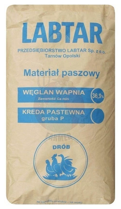 - Węglan wapnia – Kreda pastewna gruba „P” – jest to produkt ze względu na swoją granulację przeznaczony dla drobiu w celu ułatwienia trawienia i rozdrabniania pokarmu w wolu.