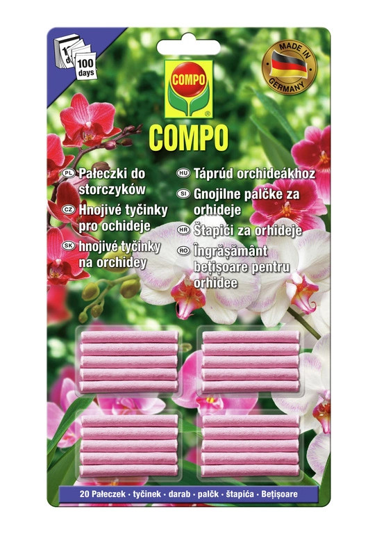 - Compo Pałeczki nawozowe do storczyków to wygodny nawóz o przedłużonym działaniu, który zapewnia storczykom odpowiednie składniki pokarmowe nawet przez 100 dni. Idealne do codziennej pielęgnacji wszystkich odmian storczyków uprawianych w domu.
