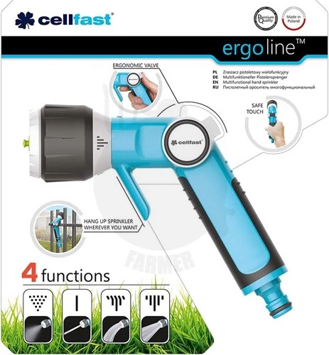 - wysokiej klasy, ergonomiczny, wielofunkcyjny zraszacz pistoletowy z bezstopniową regulacją strumienia