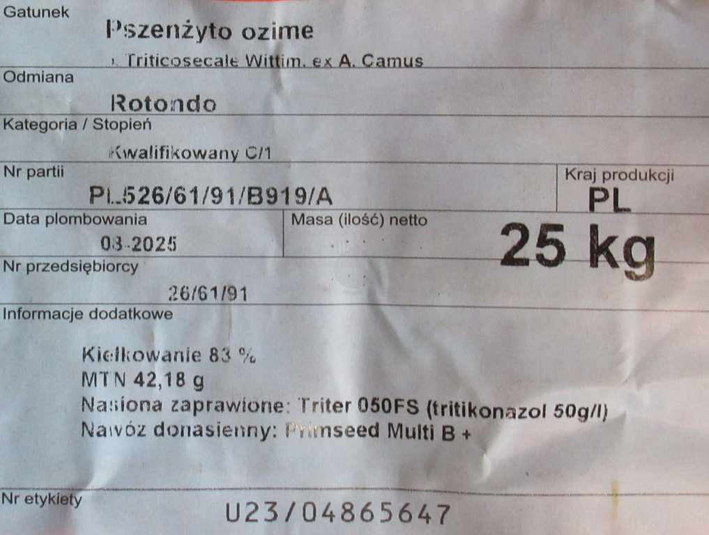 Pszenżyto ozime Rotondo nasiona kwalifikat C1