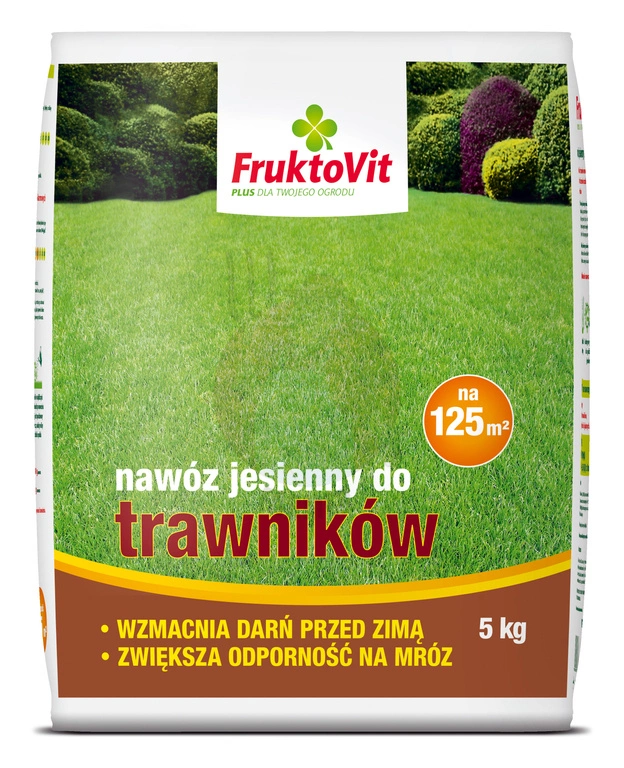 • FruktoVit PLUS nawóz jesienny do trawników zawiera składniki mineralne, które zaspokajają zapotrzebowanie pokarmowe trawnika jesienią oraz zapewniają lepszy start już od wczesnej wiosny.