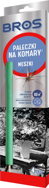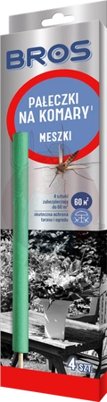 - Pałeczki do zwalczania komarów i meszek działają bójczo już po 10 minutach, zapewniając kilkugodzinną ochronę. Wystarczy zapalić końcówkę, zdmuchnąć płomień i umieścić ją w ziemi. Jedna pałeczka chroni ok. 15 m², skutecznie odstraszając owady.
