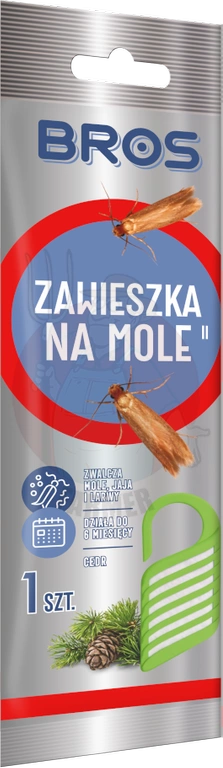 - Preparat w postaci zawieszki do zwalczania moli. Skutecznie zabezpiecza odzież przechowywaną w szafach, szufladach i garderobach przed niszczącym działaniem moli. Nadaje ubraniom przyjemny, świeży zapach.