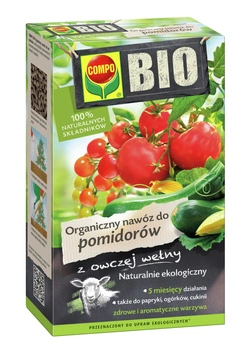 Compo Bio Organiczny nawóz do pomidorów jest prawdziwą innowacją. W technologii opracowanej przez COMPO wykorzystujemy wyłącznie naturalne, organiczne surowce i nie dodajemy żadnych sztucznych składników. 50% nawozu stanowi czysta, owcza wełna uzupełniona o naturalne składniki pochodzenia roślinnego. Dzięki temu mamy pewność, że Compo Bio Organiczny nawóz do pomidorów spełnia restrykcyjne wymogi europejskie i może być stosowany w uprawach ekologicznych.