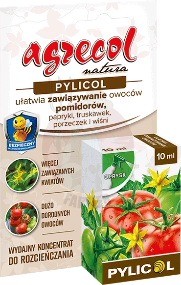 Pylicol to preparat do dolistnego dokarmiania pomidorów. Doskonały również w uprawie papryki, oberżyny, truskawek, porzeczek i malin. Specjalnie skomponowany skład jest dostosowany do potrzeb roślin w czasie kwitnienia. Preparat wspomaga zawiązywanie owoców, uzupełniając potrzebne w tym celu składniki pokarmowe. Zapobiega nadmiernemu zamieraniu kwiatów i zawiązków owocowych. Dzięki regularnemu stosowaniu preparatu rośliny wytwarzają dużą ilość dorodnych owoców.