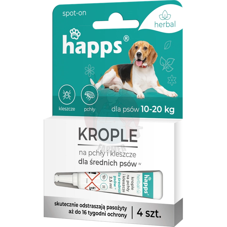 Happs Spot-on krople przeciwko pchłom i kleszczom dla średnich psów herbal