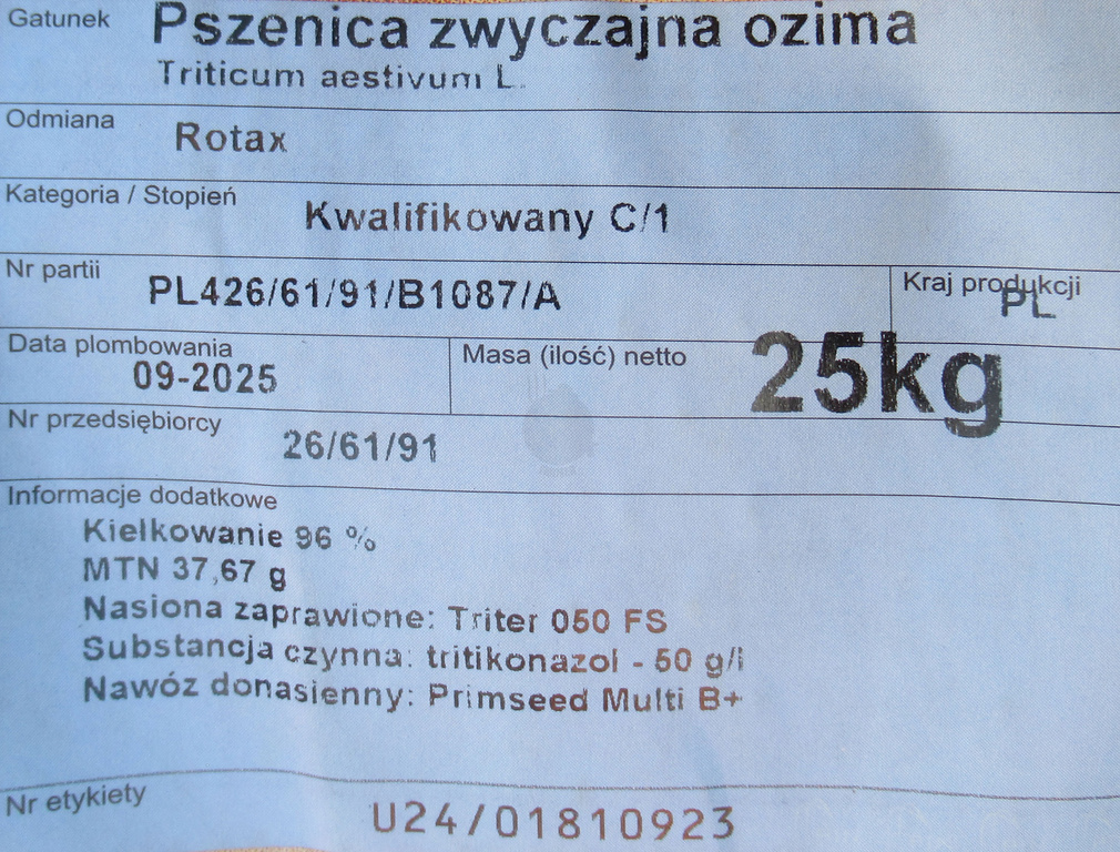 Pszenica ozima Rotax nasiona kwalifikat C1
