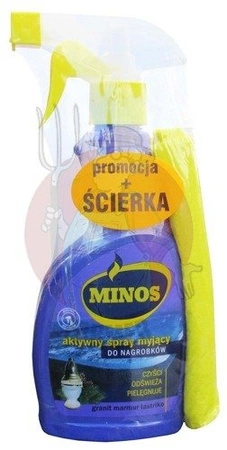 - Minos aktywny spray myjący przeznaczony jest do mycia nagrobków oraz innych powierzchni z kamienia polerowanego – lastriko, granitu, marmuru.