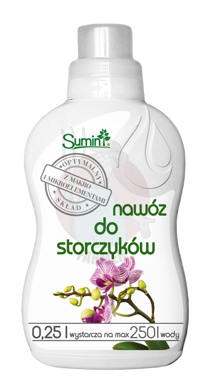 • Nawóz SUMIN do storczyków to produkt wysokiej jakości, zawierający wszystkie składniki pokarmowe rozpuszczalne w wodzie.