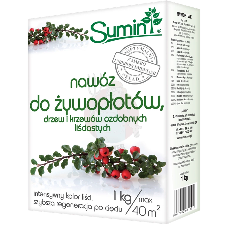 Nawóz do żywopłotów, drzew i krzewów ozdobnych liściastych 1 kg Sumin