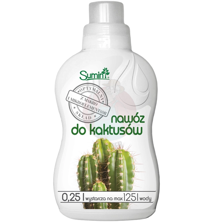 - Nawóz SUMIN do kaktusów to produkt wysokiej jakości, zawierający wszystkie składniki pokarmowe rozpuszczalne w wodzie.