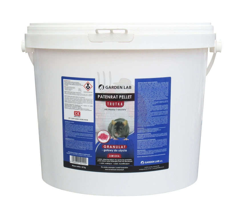 PATENRAT PELLET jest to gotową do użycia przynęta gryzoniobójczą, zawierającą substancję czynną o działaniu przeciwzakrzepowym – Bromadiolon. Trutka przeznaczona do zwalczania myszy (Mus musculus) i szczurów (Rattus norvegicus, Rattus rattus), wewnątrz i wokół budynków oraz na terenach otwartych