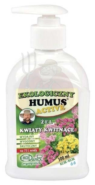 • Humus Active do kwiatów kwitnących żel to innowacyjny i wyjątkowo wydajny organiczno-mineralny polepszacz glebowy, zalecany do stosowania do wszystkich roślin kwitnących w domu na balkonie i w ogrodzie. Opakowanie 300ml.wystarczy na 75 l wody.