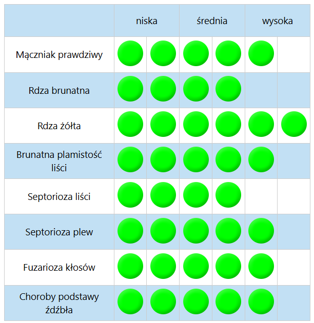 Rozpatrując szerzej bezpieczeństwo uprawy pszenicy nie można zapominać o odporności na choroby grzybowe. EUFORIA bardzo dobrze radzi sobie z najważniejszymi chorobami występującymi w tym gatunku. Zwłaszcza odporność na choroby podstawy źdźbła powinna być istotna dla wszystkich, którzy decydują się na uprawę pszenicy w wadliwym płodozmianie (z dominacją zbóż).