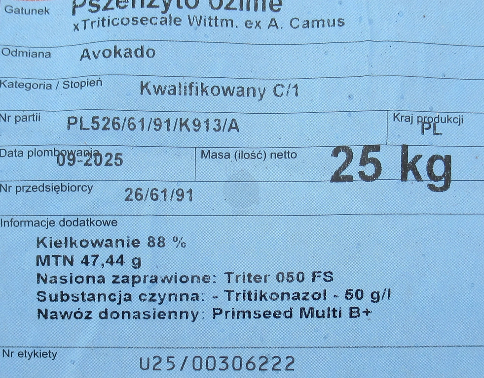 Pszenżyto ozime Avokado nasiona kwalifikat C1
