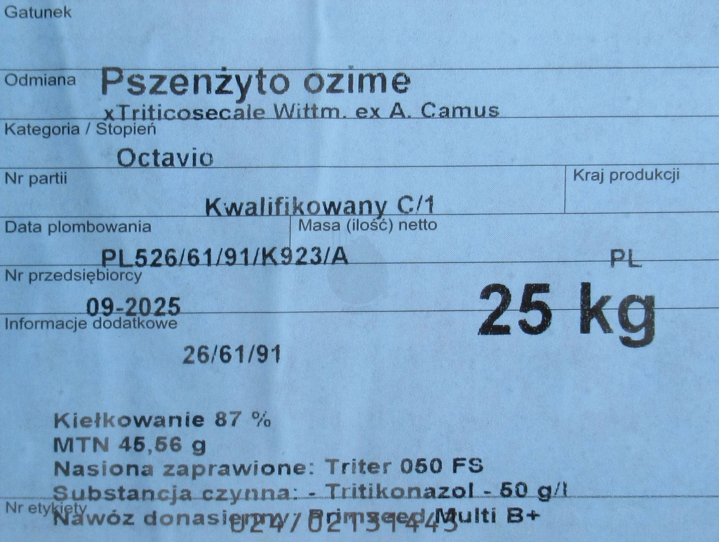 Pszenżyto ozime Octavio nasiona kwalifikat C1