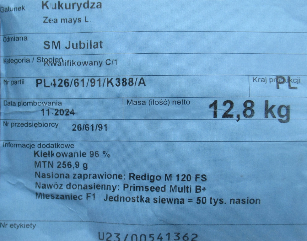Kukurydza siewna SM Jubilat kwalifikat C1