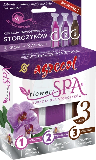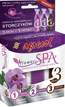 - Flower SPA 3 – uzupełnia niedobory składników pokarmowych zwiększając odporność storczyków na niekorzystne czynniki