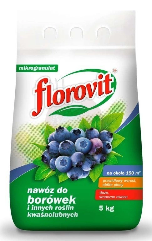 Wieloskładnikowy, mineralny nawóz doglebowy, przeznaczony do pogłównego dokarmiania borówek w pierwszym roku po posadzeniu i w dalszych latach uprawy. Ważną zaletą Florovitu do borówek jest zdolność zakwaszania gleby, co wyraźnie sprzyja wzrostowi i rozwojowi roślin wymagających stanowiska o niskim odczynie podłoża. Cechuje go również brak azotanów. Borówki sadzi się jesienią w podłoże o pH 3,8 - 4,8. Rośliny uprawiane w podłożu o zbyt wysokim odczynie charakteryzują się małymi przyrostami oraz przedwczesnym żółknięciem i opadaniem liści. Nawóz zapobiega chlorozie liści w okresie wegetacji roślin. Ponadto zastosowano w nim słabo przemieszczające się w glebie formy składników pokarmowych, co zabezpiecza je przed wymywaniem do wód gruntowych.
